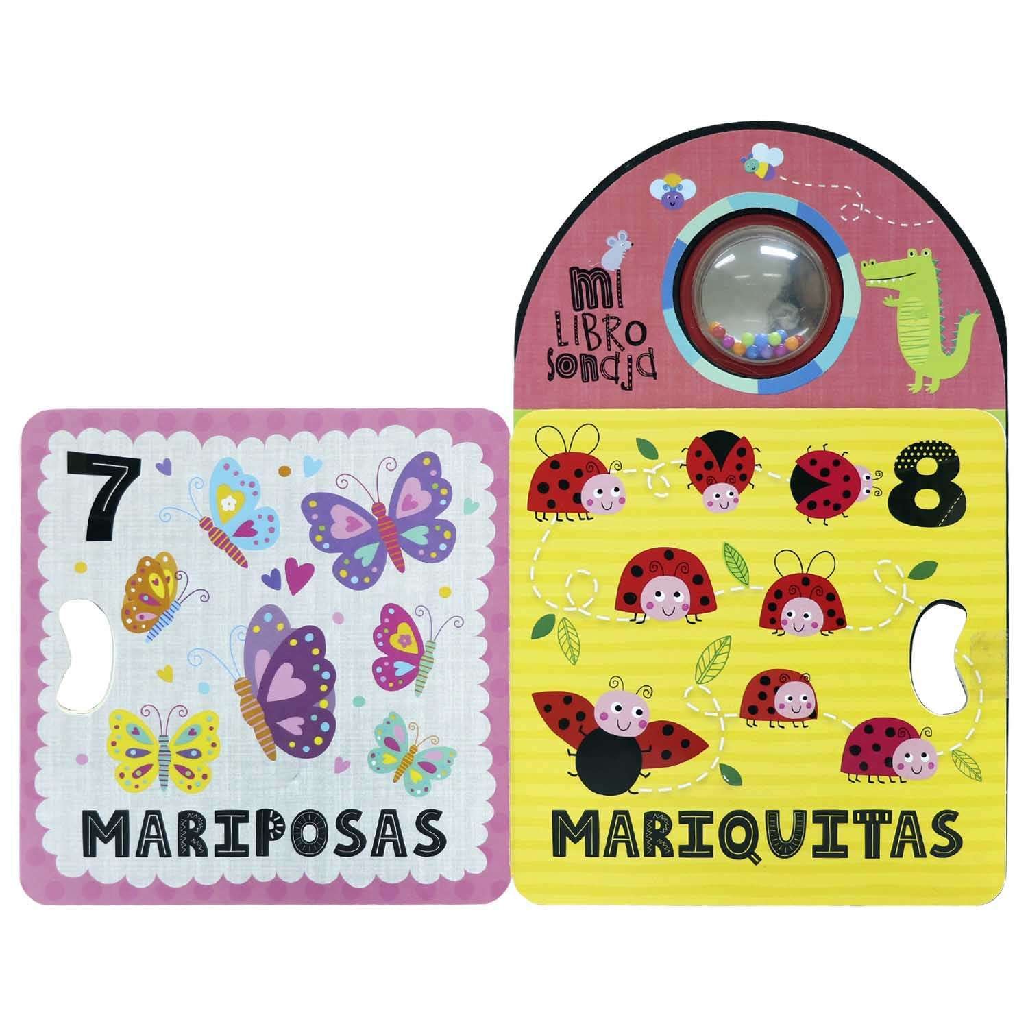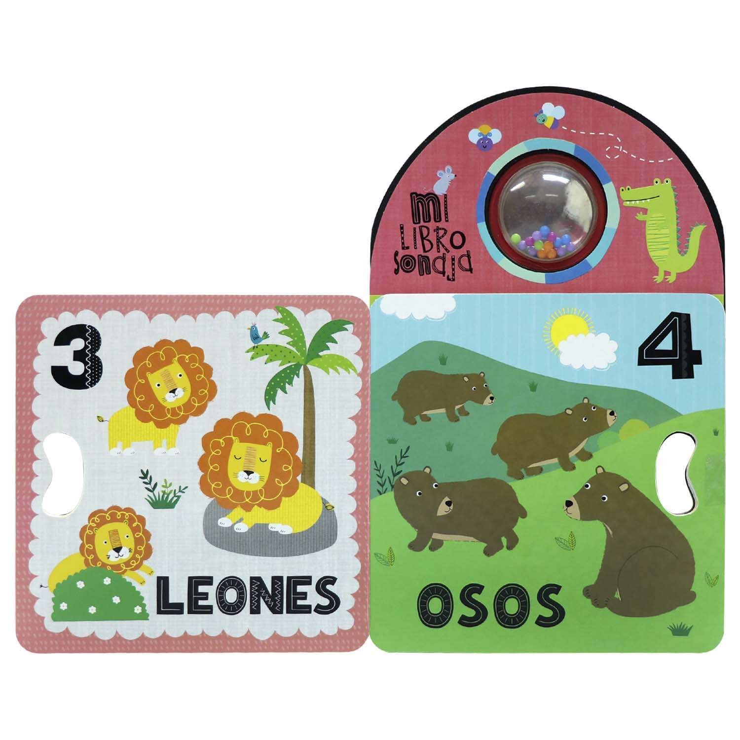 Agita la sonaja, voltea las páginas y di lo que ves en este divertido y ruidoso primer libro para contar. Estimularás el oído, vista y tacto de tu niño. Además de un fino troquelado para la manito del niño.
