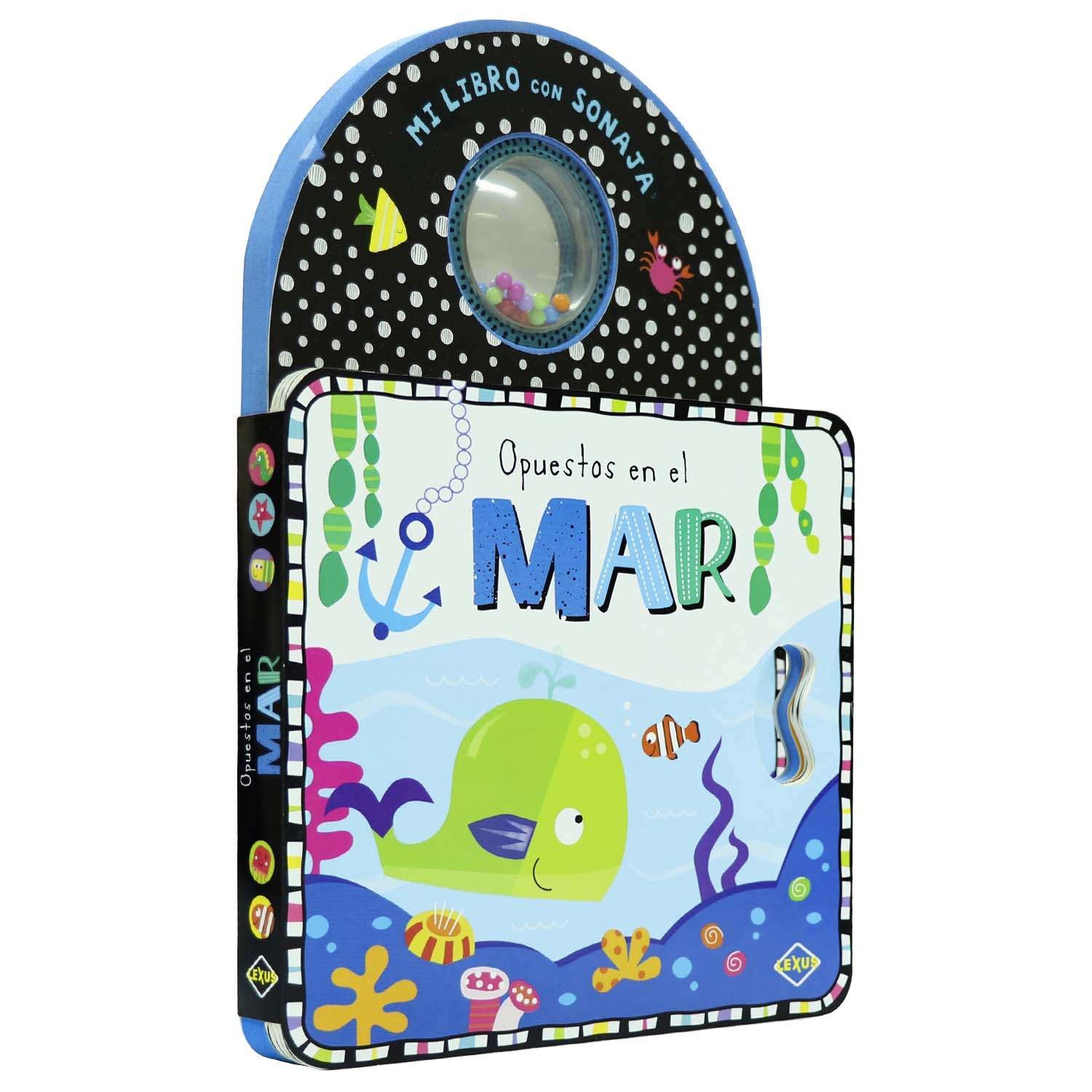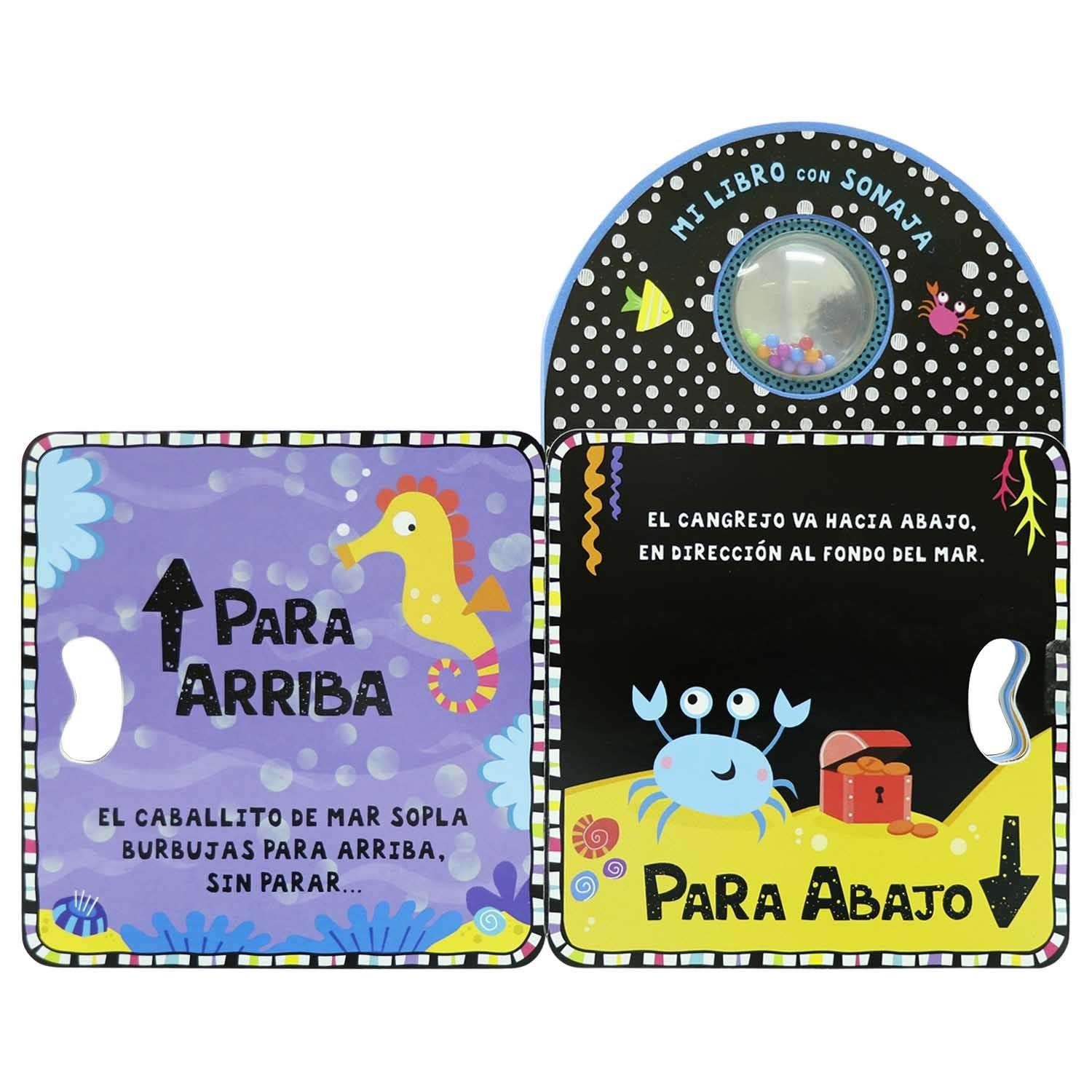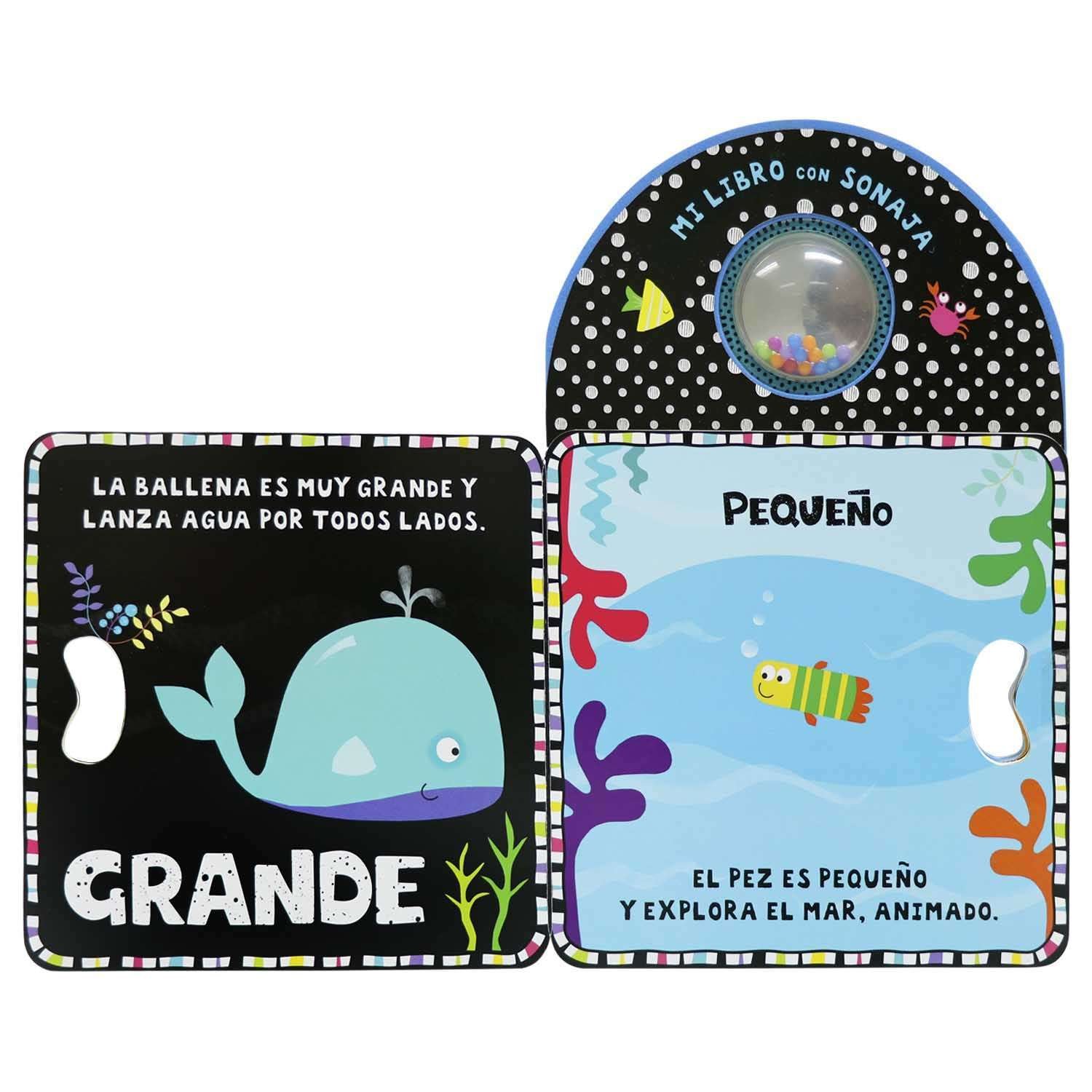 Agita la sonaja y abre este increíble libro para conocer los opuestos en el mar. Estimularás el oído, vista y tacto de tu niño. Además de un fino troquelado para la manito del niño.