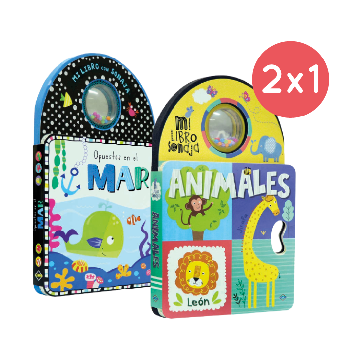 ¡2 libros de sonajas por el precio de uno! Opuestos en el mar y Animales.
