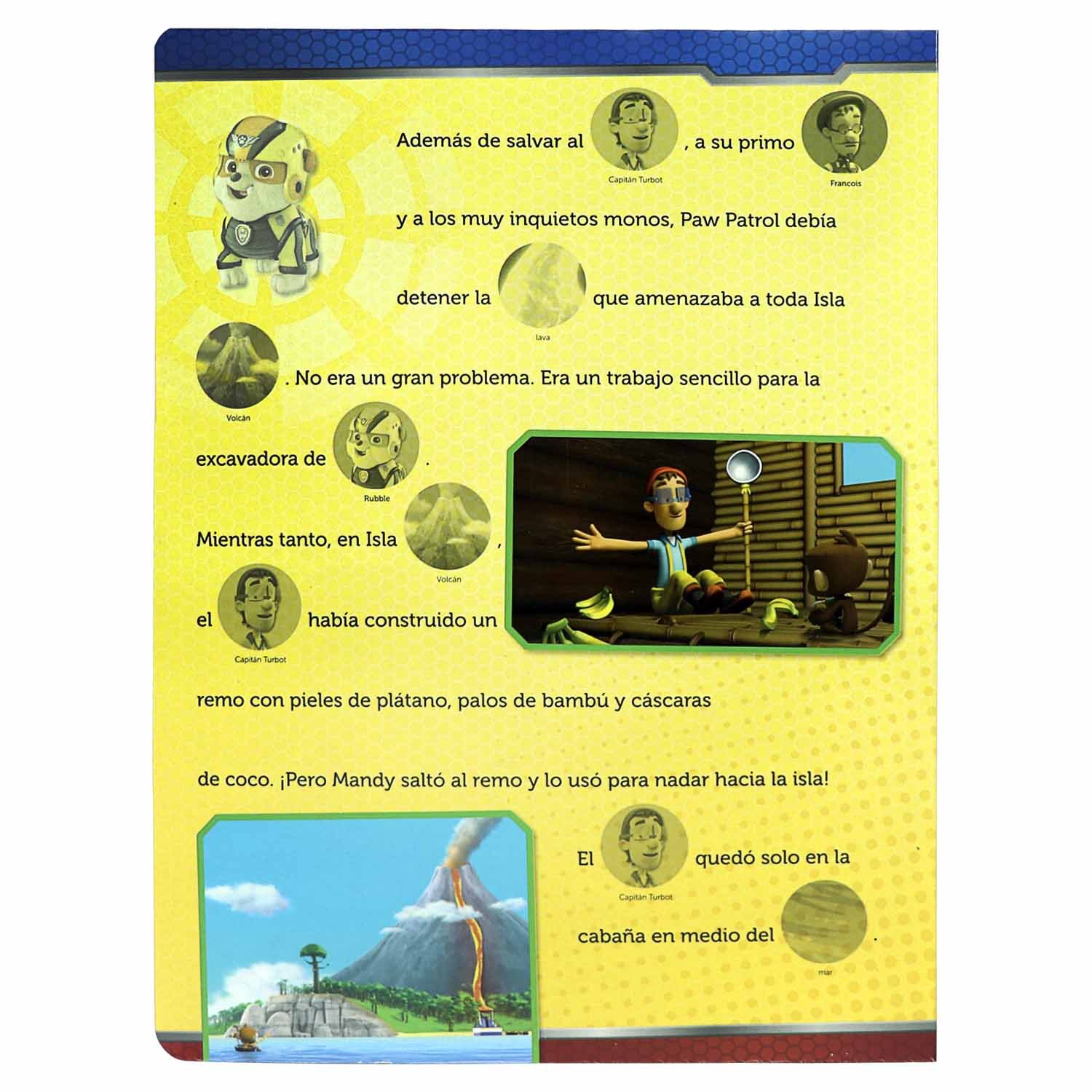 El capitán Turbot y Francois, su primo, pasaban un día estupendo en la pequeña Isla Volcán. Todo iba bien hasta que, la Isla comenzó a temblar. Utiliza las calcomanías para completar las historias y diviértete decorando las páginas de tu libro.